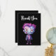Cartões de agradecimentos com uma bela ilustração. Monstro de Frankenstein com cabelo rosa e roxo e um terno e gravata.
