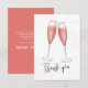 Este design apresenta um cartão de agradecimento de ensaio de noiva, com um rosa choque, com um tema de casamento, letra cursiva, com uma arte moderna elegante, aquarela, champanhe com tipografia caligráfica, com um tema de brunch e bebidas espumantes.
