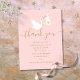 Cartão de agradecimento de entrega especial com uma cegonha fofa carregando uma entrega de estrela dourada muito especial, com um lindo agradecimento em escrita dourada, poema e seus nomes em um fundo rosa de bebê menina. Uma maneira perfeita de dizer obrigado! Criado por Thisisnotme©