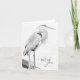 Este cartão de agradecimento apresenta um desenho estilo esboço a lápis de uma bela Garça Azul Grande em pé sobre rochas com vista para a água. Tudo feito em tons de preto e branco.