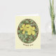 Este cartões de agradecimentos apresenta uma ilustração em forma oval das folhas e flores de sorriso de madeira. Um estilo de bloco de madeira dá a esta trabalho de arte uma qualidade única e artesanal. Disponível em flores violetas ou amarelas. Da obra de arte original de Carolyn A Pappas.