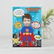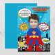 Uma festa de aniversário com tema de super-herói é uma maneira popular e emocionante de celebrar o dia especial de uma criança. É uma maneira divertida de estimular a imaginação e a criatividade enquanto se comemora o aniversário de um menino. Este design ousado e vibrante com tema de super-herói em cor azul, apresentando estilo de história em quadrinhos, é uma ótima maneira de trazer a emoção das histórias em quadrinhos e super-heróis à vida para jovens fãs. Adicione uma foto do aniversariante para criar seus suprimentos personalizados para a festa com tema de super-herói.