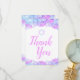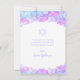 Mostre seu apreço à sua família e amigos por frequentar seu Bat Mitzvah com este obrigado elegante, seu cartão plano. Este design apresenta uma fronteira de delicadas flores de hydrangea em tons de rosa, azul-aqua e lavanda. Há uma estrela de David destacando a carta e as palavras "Obrigado" em uma tipografia de escrita rosa moderna. Desenhado pela artista ©Susan Coffey.