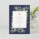 Um elegante cartão de agradecimento de funeral judaico com folhagem botânica em aquarela em um fundo azul marinho que você pode personalizar com sua própria mensagem de agradecimento. Criado por Thisisnotme©