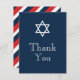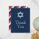 Este moderno Cartão de Agradecimento Estrela de Davi combina perfeitamente com o Conjunto de Convite Preppy Azul Navy e Vermelho da VG Invites. Ele apresenta uma ousada Estrela de Davi em um fundo azul marinho. A parte traseira apresenta listras vermelhas e azuis e uma seção para adicionar sua saudação pessoal. Veja www.zazzle.com/vginvites para convites e envelopes correspondentes.