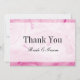 Cartões de agradecimentos de casamento de buquê rosa rosa-eterno rosa-rosa. Imagem romântica de fundo floral. Modelo de tipografia de script elegante com nomes personalizados. Linda imagem fotográfica. Carregue a sua própria imagem opcionalmente. Parte do conjunto de coleta correspondente com convites e decoração. Perfeito por agradecer convidados.