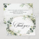 Cartão de agradecimento de casamento moderno e elegante para a primavera / verão apresenta um buquê de verde água suave / folhas verdes exuberantes / folhas botânicas / eucalipto / suculentas e moldura geométrica dourada. Encontre mais designs e variações correspondentes na minha loja "blissweddingpaperie". E sinta-se à vontade para entrar em contato comigo para mais personalização ou itens correspondentes.