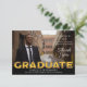 Design de fotos elegante e moderno preto e dourado "Formando" "Obrigado". Simplesmente adicione seu nome, escola, ano de graduação e detalhes ou planos de licenciatura.Este design pode ser facilmente modificado para graduações em universidades, universidades ou segundos graus. Design por Holiday Hearts Designs com modelo de espaço reservado para o crédito de fotos para Taylor Grote via Unsplash.