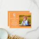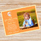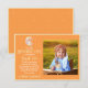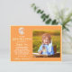 Design assustador de Halloween com uma lua amarela derretida em fundo laranja e um fantasma assustador fofo. Perfeito para uma fofura assustadora de Boo! Personalize o nome e a foto do seu menino para um cartão de agradecimento de 1º aniversário assustador.
