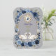 Express your gratitude with regal elegance. This design blends royal heraldry with romantic florals, perfect for thanking guests after your fairytale day.This design features a sophisticated slate gray background anchoring a symmetrical composition. At the center, two soft white swans face one another, framed by an ornate, printed faux gold foil crest. The emblem is adorned with watercolor botanical arrangements featuring dusty blue and navy roses, muted green foliage, and small white blossoms. The typography combines a traditional serif font for names with a flowing, romantic calligraphy script for the "Thank You" message.This is a flat printed image with a digital Faux Gold Foil effect. It does not contain actual raised foil or metallic materials.
