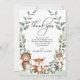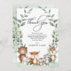 Este cartão de agradecimento temático da floresta adorável apresenta ilustração pintada à mão de animais da floresta fofos e coroa de verde suave. Use as ferramentas de design para editar o texto, alterar a cor e o estilo da fonte para criar um design de cartão de agradecimento único.