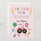 Cartão De Agradecimento Fazenda de Meninas Animais Rosa Trator Aniversário