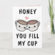 Procurando uma maneira única de expressar seu amor e humor ao seu parceiro romântico? Nosso cartão engraçado de café é a escolha perfeita para seu marido ou esposa no seu aniversário! Personalize-o adicionando sua própria mensagem pessoal. Design apresenta duas xícaras de café bonitinhas de mãos dadas. Excelente maneira de enviar desejos de aniversário para o seu namorado ou namorada.