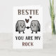 Um cartão de aniversário feliz e engraçado para os melhores amigos do rock sólido! Design apresenta duas rochas bonitas de mãos dadas com a mensagem "Bestie, você é minha rocha. Eu nunca te levarei por granito!" Texto castanho e preto. Personalize-o e adicione a sua própria mensagem pessoal.