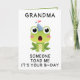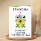 Procurando uma maneira única de expressar seu amor e humor para seu avô? Nossa carta de sapo engraçada é a escolha perfeita para sua avó no aniversário dela! Personalize-o adicionando sua própria mensagem pessoal. Design apresenta um sapo verde chocado vestindo um chapéu azul de aniversário. Excelente jeito de enviar desejos de aniversário para sua avó favorita.