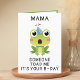 Procurando uma maneira única de expressar seu amor e humor para seus pais? Nossa gracinha de saudação de sapo é a escolha perfeita para sua mãe no seu aniversário! Personalize-o adicionando sua própria mensagem pessoal. Design apresenta um sapo verde chocado vestindo um chapéu azul de aniversário. Excelente jeito de enviar desejos de aniversário para sua mãe favorita.