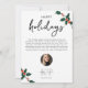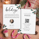 Um belo design incorporando 1 das suas próprias fotos e o seu Código QR. Este elegante cartão de Natal Real Estate é ideal para todos os corretores que contactam os seus donos de casa para a época de férias. Uma maneira simples e profissional de promover sua empresa e obrigado seus clientes. Um cartão de Natal perfeito para agentes imobiliários, corretores, etc. Personalize seus detalhes para criar seu próprio cartão de visita exclusivo.