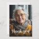 A frente deste convite de 80 apresenta a foto do convidado de honra com as palavras "obrigado você" na elegante cobertura de script de caligrafia branca. Uma tela escura ajuda a tornar o texto pop. Personalize o lado inverso com sua mensagem pessoal na fonte de sans serif branca e seu nome no script em um plano de fundo verde sage.
