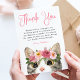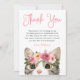 Cartão de agradecimento de aniversário fofo com "Obrigado" exibido em uma fonte cor-de-rosa caprichosa com um gato pintado em aquarela usando uma coroa de flores rosa e malva mostrado abaixo. Personalize o cartão de agradecimento de aniversário do gato com sua mensagem personalizada e nome. Coordenação de design com nossa coleção Sweet Watercolor Kitty.