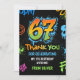 Cartão de Agradecimento da Festa de Aniversário de 7 Anos do Neon Graffiti Six Seven Kids