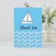 Cartão de agradecimento para a Festa de Aniversário do Barco à Vela. Barcos à vela brancos minimalistas no azul.