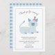 Cartão de agradecimento de festa de aniversário fofo para a festa temática de gato do seu filho. Ilustração de um gato azul com um sorriso no rosto usando um chapéu de festa. O texto acima diz "obrigado por vir!" e o texto abaixo entra em mais detalhes agradecendo ao amigo por participar do evento e pelo presente que trouxe. Você pode adicionar o nome do seu filho na parte inferior. Os textos são facilmente editáveis online.