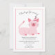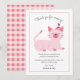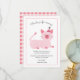 Cartão de agradecimento de festa de aniversário fofo para a festa temática de gato do seu filho. Ilustração de um gato rosa com um sorriso no rosto usando um chapéu de festa. O texto acima diz "obrigado por vir!" e o texto abaixo entra em mais detalhes agradecendo ao amigo por participar do evento e pelo presente que trouxe. Você pode adicionar o nome do seu filho no final. Os textos são facilmente editáveis online.