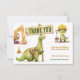Diga obrigado em estilo pré-histórico com este cartão de agradecimento do Sítio de Escavação Jurássica! Com dinossauros brincalhões e máquinas de construção em aquarela suave, é perfeito para pequenos construtores que amam cavar, rugir e construir grandes aventuras. Totalmente personalizável com o nome da criança para uma lembrança memorável após a festa.