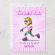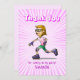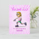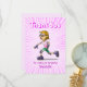 Cartão de agradecimento de aniversário de patinação no gelo rosa para todas as idades com uma ilustração fofa e divertida de uma menina de patins.