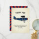 Cartão de agradecimento fofo para uma festa temática de avião. Personalize com o nome da sua criança.