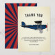 Cartão De Agradecimento Festa de Aniversário do Avião Azul Retrô Vintage