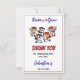 Agradeça com estilo com este cartão de agradecimento de primeiro aniversário de beisebol de Nossos Pequenos Animais! Com um tema de beisebol com animais fofos, é perfeito para enviar mensagens sinceras a amigos e familiares após o grande dia do seu pequeno jogador. Ótimo para meninos ou meninas, esses cartões adicionam um toque divertido e coordenado à sua celebração de primeiro aniversário com tema de beisebol.