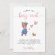 Cartão de agradecimento de festa de aniversário de menina com tema de ursinho de pelúcia fofo com ilustração de aquarela de um filhote com um traje de marinheiro com um brinquedo de pato e coração rosa. A mensagem agradece aos convidados por terem comparecido à festa. O texto no topo diz "obrigado BEARY muito!"