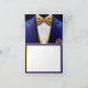 Mens royal blue e gold... obrigado a cartas com um terno azul real, arco de ouro, colete de ouro e quadrado de bolso de ouro. Estas cartas reais, azuis e douradas, agradecidas a você são facilmente personalizadas adicionando sua mensagem impressa no dentro, ou deixe o vazio para a sua mensagem escrita à mão. Estas cartas de agradecimento são excelente de eventos corporativos, aposentadorias, despedida de solteiro e qualquer evento formal de gravata negra. E seu texto, logotipo, imagens, etc., para personalizar.