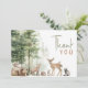 Celebre seu dia especial com nossos animais florestais, cartões de agradecimentos de festa de aniversário horizontal, perfeito para uma ocasião fofa e caprichosa! Ele apresenta um tema moderno de floresta aquática com criaturas adoráveis como uma raposa, urso pardo, coelho e veado. Essa design boêmica estabelece uma cena doce e simples com sua paisagem natural de árvores verdes e corujas e aves clássicas. Ideal para celebrar um menino ou uma menina, esta design é tão charmosa quanto é eterno. Por favor, sinta-se à vontade para fazer quaisquer perguntas sobre a design do produto; estamos felizes em ajudar!