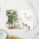 Celebre seu dia especial com nossos animais florestais, cartões de agradecimentos de festa de aniversário horizontal, perfeito para uma ocasião fofa e caprichosa! Ele apresenta um tema moderno de floresta aquática com criaturas adoráveis como uma raposa, urso pardo, coelho e veado. Essa design boêmica estabelece uma cena doce e simples com sua paisagem natural de árvores verdes e corujas e aves clássicas. Ideal para celebrar um menino ou uma menina, esta design é tão charmosa quanto é eterno. Por favor, sinta-se à vontade para fazer quaisquer perguntas sobre a design do produto; estamos felizes em ajudar!