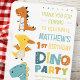 Cartão De Agradecimento Festa de Aniversário Infantil de Dinossauro Dino M