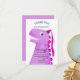 Cartão de agradecimento engraçado e fofo de festa de aniversário para a festa temática de dinossauro do seu filho. Ilustração em estilo de desenho animado de um dinossauro rosa. O t-rex está usando um chapéu de festa de princesa rosa. Acima do t-rex está escrito "Obrigado por passar". No corpo do dinossauro há uma mensagem que agradece ao convidado por vir e pelos presentes. Adicione o nome do seu filho no final. O texto é facilmente editável online.