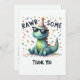 Diga obrigado com estilo dino-mite com este adorável cartão de agradecimento “Rawr-some”! Com um T-Rex legal usando óculos de sol e um chapéu de festa, cercado por confetes coloridos, este cartão é perfeito para encerrar qualquer festa pré-histórica. A parte de trás inclui espaço para uma mensagem personalizada, tornando fácil enviar agradecimentos personalizados após uma celebração incrível!