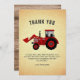 Cartão de agradecimento fofo para uma festa com tema de trator. Personalize com o nome do seu filho.