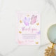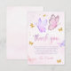 Cartão de agradecimento da festa de aniversário da menina borboleta rosa roxo dourado.