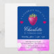 FESTA DE ANIVERSÁRIO DE MENINA CRIANÇA FOFA COM MORANGO E CORAÇÕES NO AZUL ESCURO E ROSA COM FUNDO DE CÍRCULOS. Veja a coleção completa em Moondust Designs ©