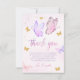 Cartão de agradecimento festa de aniversário menina rosa roxo dourado borboleta.