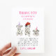Cartão de agradecimento de festa de aniversário infantil tema bombeiro fofo com ilustração de aquarela de cães dálmatas com capacete de bombeiro e chapéus de festa rosa. O texto padrão agradece aos convidados por comparecer à festa e pelos presentes. O texto diz "obrigado por vir ao resgate!"