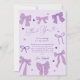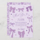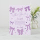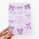 Cartão de agradecimento de festa de aniversário com tema de laço fofo apresentando ilustração de laços roxos e corações desenhados à mão.