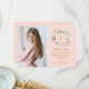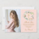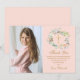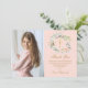 Com uma linda grinalda floral em aquarela rosa sobre um fundo rosa suave. Este cartão de agradecimento da primeira comunhão pode ser personalizado com a sua própria foto e mensagem especial de agradecimento. Você pode personalizar o verso para a sua cor favorita ou adicionar informações adicionais. Criado por Thisisnotme