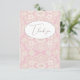 Fundo pastel rosa com sobreposição de renda falsa vintage. “Obrigado” em tipografia sofisticada. Perfeito para qualquer ocasião.