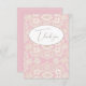 Fundo pastel rosa com sobreposição de renda falsa vintage. “Obrigado” em tipografia sofisticada. Perfeito para qualquer ocasião.