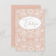 Fundo pêssego bonito com renda falsa vintage. “Obrigado” em tipografia sofisticada. Perfeito para qualquer ocasião.