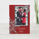 Personalize o elegante Floco de Neve Prateado no Red Obrigado Nota o dentro do Cartão com fotos e para fora. Adicione a sua foto do lado de fora e também adicione sua própria nota pessoal de obrigados, apreciação e dentro de gratidão. Adequado para presentes recebidos no Natal ou no inverno, chá de panela, festa de noivado ou casamento. Este floco de neve clássico e festivo agradece a vocês notarem que o cartões de fotos apresenta incríveis flocos de neve de tom prateado adorando os cantos com um fundo vermelho.
